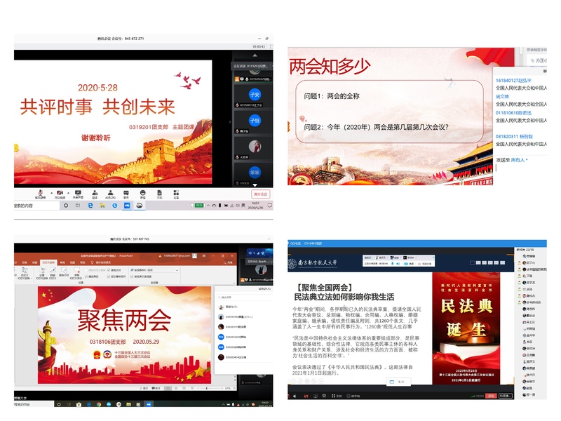 2020年5月21日,全国两会在北京召开。为引导学生关注“两会”动态,提升政治素养,深入贯彻党的教育方针。蜜桃视频 各团支部于5月22日陆续进行线上团日活动,以“共学两会,共话成长”为主题开展信仰公开课。