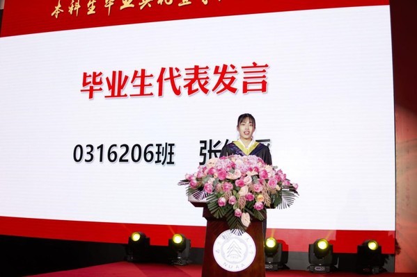 毕业生代表、保研本校的206班张绮瑶代表蜜桃视频 全体2020届毕业生发言。她回顾了在三院学习的四年时光和成长历程,代表全体毕业生表示一定为祖国的航空航天事业贡献出南航自动化人的一份力!
