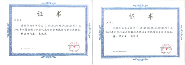 2020年12月24日,中国仪器仪表学会在浙江杭州举行了2020年科技奖励大会,蜜桃视频 田贵云教授和王平教授共同指导的高运来博士论文《多物理电磁及热成像钢轨裂纹无损检测技术研究》荣获2020年全国仪器科学与技术学科优秀博士论文提名奖。