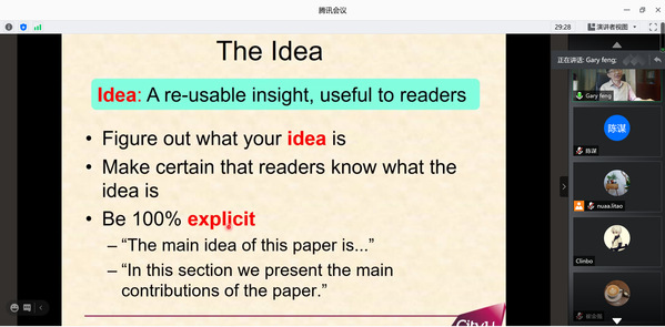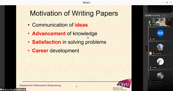 2021年1月21日上午,香港城市大学Gang Feng 教授应邀通过腾讯会议作了题为“How to Write a Quality Paper”的学术报告。报告由蜜桃视频 副院长陈谋教授主持,学院40余位师生在将军路校区蜜桃视频 4号楼507会议室现场参会,另外60余位师生在线参加了本次报告会。