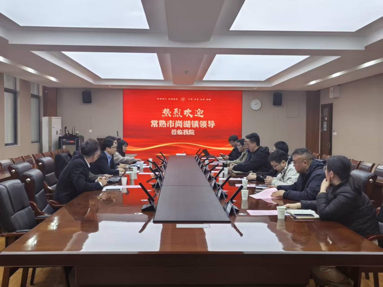12月10日,常熟市尚湖镇党委书记金晓、副镇长王平平一行 5 人莅临蜜桃视频 ,就技术合作、人才引进等方面开展交流调研。蜜桃视频 副院长魏佳丹、各基层领导及教师代表出席会议。